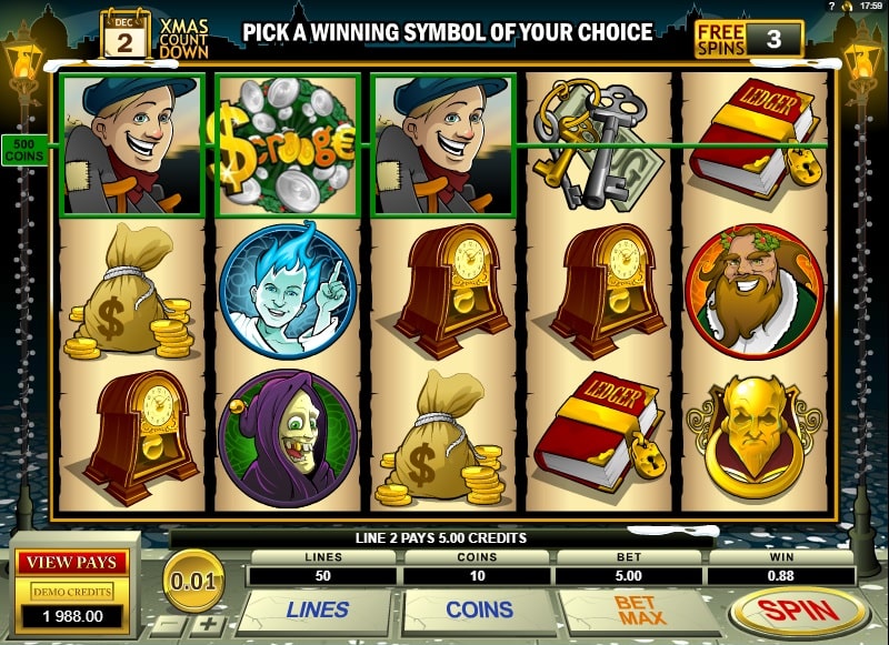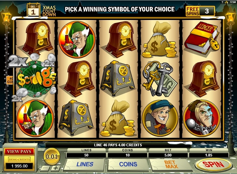 Ведущая компания Microgaming решила порадовать всех любителей сказки «Рождественская песнь», вышедшей из-под пера Чарльза Диккенса, и всех любителей качественных азартных игр, выпустив красочный игровой автомат Scrooge с теми же героями.
