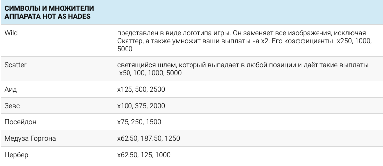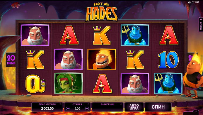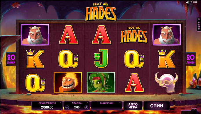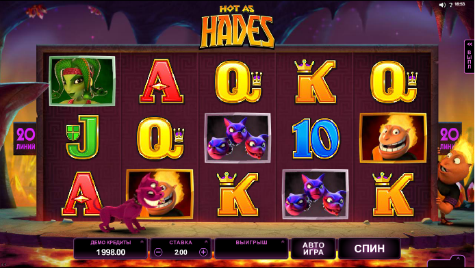 Игровой автомат от Microgaming — Hot as Hades перенесёт вас в виртуальное подземное царство, хозяином которого является весёлый Аид. Осматривайте его владения и погружайтесь в мир приключений вместе с другими богами. Здесь вы можете не только развлечься, но и получить достойные выигрыши! Также доступна демо-версия, которая предлагается тем, кто не желает рисковать. Сыграйте на реальные деньги, и ваш выигрыш может составить до 100000$!