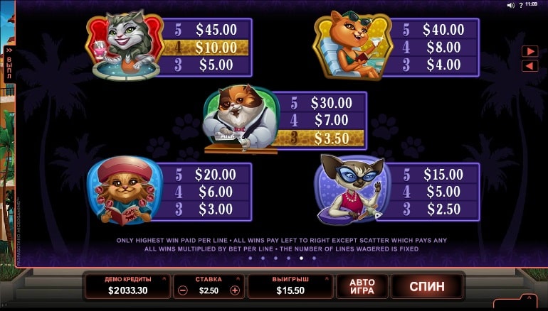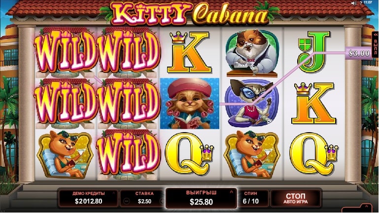 Игровой автомат Kitty Cabana от разработчикаMicrogamingпосвящен любимым домашним питомцам – кошкам. В нем они являются полноценными гражданами со своим уставом и городами.